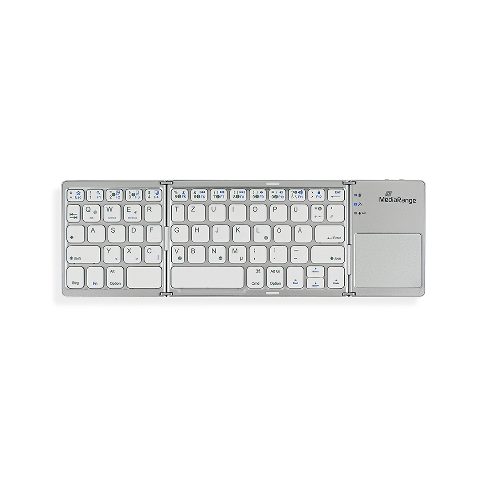 MediaRange Πτυσσόμενο Ασύρματο Πληκτρολόγιο με 63 Πλήκτρα και Touchpad, Διάταξη QWERTY (GR), Ασημί Ακρίβεια και Άνεση για Κάθε Εργασιακό Χώρο Οι συσκευές εισόδου της MediaRange είναι ιδανικές για κάθε εφαρμογή στο γραφείο ή στο σπίτι. Το συμπαγές ασύρματο πληκτρολόγιο συνδέεται γρήγορα και εύκολα με smartphones, tablets και άλλες συσκευές με δυνατότητα Bluetooth. Με διάρκεια ζωής άνω των 10 εκατομμυρίων πατημάτων και προστασία από πιτσιλιές, τα πληκτρολόγιά μας είναι άριστα προστατευμένα από τη φθορά της καθημερινής χρήσης.